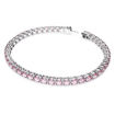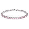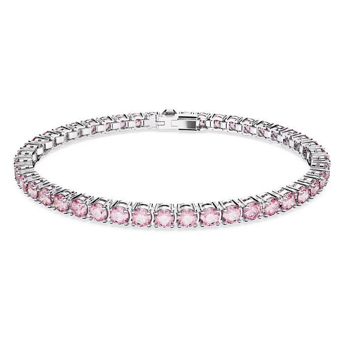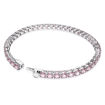 Enjoy the glimmer of rich color with this bracelet from the Matrix Tennis family. In perfectly formed fluidity, the design features a row of round purplish pink stones on a rhodium plated setting for a combination that is truly alluring. Wear it alone, or pair it with other pieces from the Matrix Tennis family.