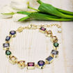 Each detail in this multi-colored Stilla bracelet is a vibrant gift of its own. Crafted with a gold-tone plated setting and a lobster clasp, the all-around design features an abundance of Swarovski Zirconia cuts in seven bold colors. For extra radiance, white crystals shine on the side of the stones. Provides an uplifting finish to any outfit.