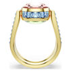 Flip the colors to suit your mood with this versatile Chroma Twist ring. The gold-tone plated shank features a green Swarovski ReCreated™ crystal at the center, which can be easily rotated for the pink crystal on the other side. Smaller Swarovski ReCreated™ crystals in blue are also featured around the design. Get playful with this joyful cocktail ring and face each day in the color you’re feeling. Chroma Twist jewelry contains at least 50% Swarovski ReCreated™ crystals, and it is our first collection designed with circularity in mind.