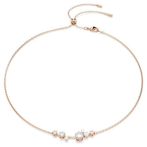 Launch your style into the stars with this versatile Constella creation. The rose gold-tone plated design features a special pulling mechanism, allowing you to wear the jewelry as a necklace or a choker. At the front, the different-sized Swarovski Zirconia and Swarovski Crystal Pearls almost seem to float among the discreet articulations, producing a look of cosmic wonder. Play with the different styling possibilities and wear it alongside a matching ring for endless reflections of light.