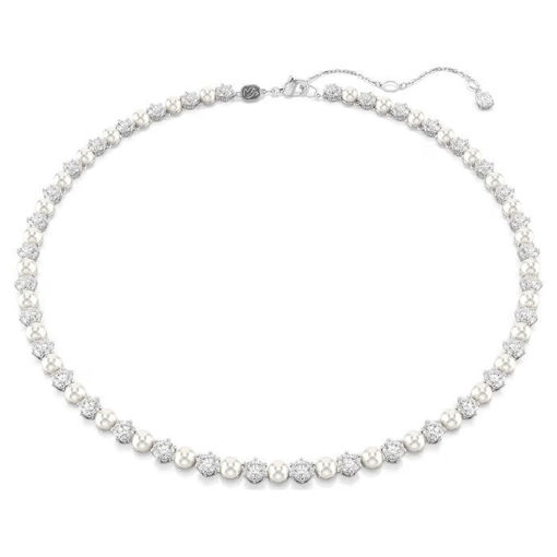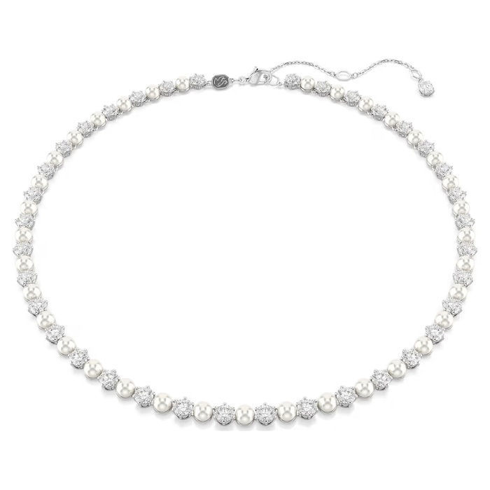 Matrix Tennis necklace Crystal pearl, Round cut, White, Rhodium plated. *Length (minimum - maximum): 41 - 44 cm *Width: 0.5 cm