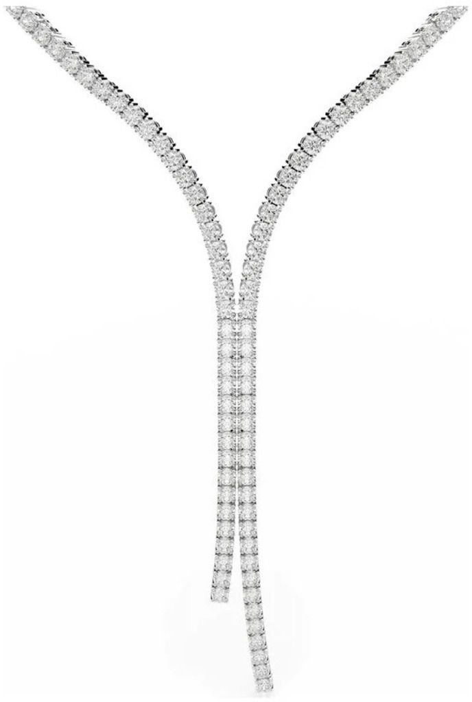 Swarovski’s signature Matrix Tennis style is elevated to the max in this glittering Y necklace. Crafted with a lobster closure, the rhodium plated design wraps around the neck with a dramatic strand of round-cut Swarovski Zirconia, each presented in a clear tone and placed in a prong setting. It’s a standout piece of jewelry for intense radiance that will add the ultimate finishing touch to any outfit.