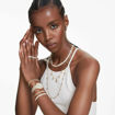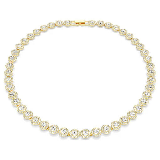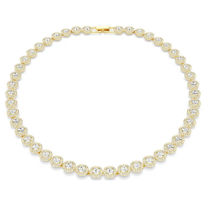 Capturing a look of timeless sophistication, this radiant Una necklace is one of Swarovski’s most cherished silhouettes. The gold-tone plated design features a full surround of large round-cut crystals, each framed by a halo of clear pavé. The foldover clasp delivers a seamless closure, while the additional extender means you can adjust the jewelry for both comfort and size. A perfect way to accentuate the glamour in your day-to-night styling.