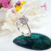 Beviser at det er kraft i enkelhet, er denne Constella-ringen en garderobe nødvendighet. Mesterlig håndverket, hovedsteinen i princess-slip stjeler oppmerksomheten og er forsterket med elegant pavé på galleriet og langs rhodiumbelagt bånd. Bruk den alene og skinn klart.