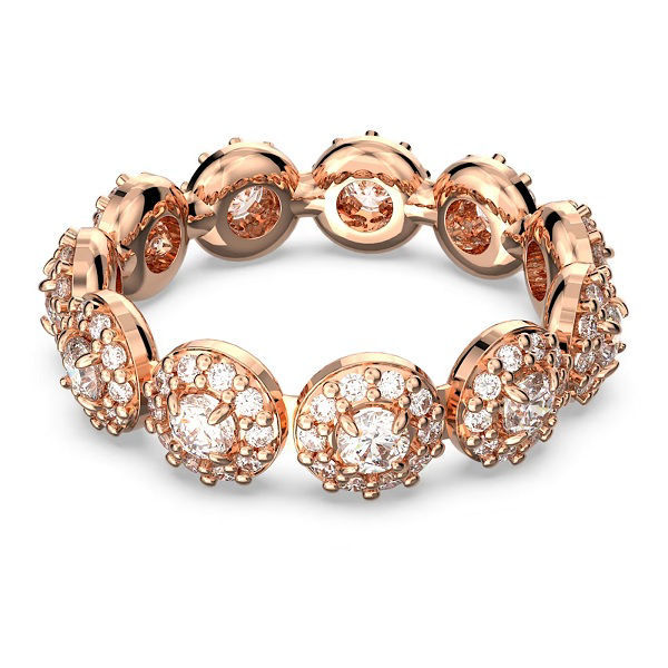 Channel elegance with this rose gold-tone plated ring from the Constella family. Inspired by fine jewelry techniques, this sophisticated design shines bright like the stars with round-cut stones and eye-catching pavé embellishment. Why not gift to yourself or a loved one?