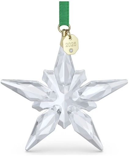 Embrace one of the traditional highlights of the season with this Swarovski Annual Edition Ornament. Suspended from a green grosgrain ribbon with champagne gold-tone accents, the star-shaped design is precisely cut with 170 light-catching facets, beautifully embodying Swarovski’s complex simplicity and technical skill. The design is completed with an engraved 2025 tag. Perfect for hanging on a decorative tree, in a window, or around the home, this ornament is a truly wondrous way to highlight your holiday celebrations. Decoration object. Not a toy. Not suitable for children under 15.
