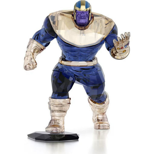 This bold and imposing figurine is a powerful tribute to the villainous titan, Thanos. Crafted with metal accents and 607 crystallized facets, Swarovski has utilized all of its master cutting expertise to precisely carve the features of this tall and muscular character. This includes the complete set of infinity stones on his hand gauntlet, which symbolizes Thanos’ ominous quest to dominate the universe. Own this collectible figurine and embrace infinite power. Decoration object. Not a toy. Not suitable for children under 15.