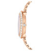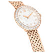 This Certa watch seamlessly blends contemporary styling with Swarovski’s signature savoir-faire. The round 30mm case is made with a beautiful rose gold-tone finish and features a bezel set with a pavé of 30 crystals. Beneath the mineral glass, a mesmerizing guilloché dial is revealed, with the Swarovski swan logo at 12 o’clock, along with indexes created from round and baguette crystals. There is also a single crystal set in the watch’s crown. For style around the wrist, the watch is presented on a seven-link bracelet with a rose gold-tone finish. This Swiss made watch is water resistant to 50m and is designed to keep you on time for everyday occasions with exquisite sophistication.