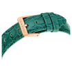 This green chronograph watch delivers a perfect fusion of watchmaking expertise and Swarovski savoir-faire. The round 37mm case is made with a rose gold-tone finish and features a crystallized bezel, which is neatly faceted and accompanied by a circle of clear pavé. Beneath the mineral glass, the guilloché dial features a swan logo at 12 o’clock, LumiNova coated hands, and three chronograph counters for separate measurements of hours, minutes, and seconds. There are also six clear crystals used for the indexes and a single crystal placed in the watch’s crown. This Swiss made watch is water resistant to