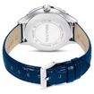 In tribute to the 55th anniversary of the first moon landing, this Octea Moon watch exquisitely links the passage of time with the lunar cycle. The 37mm stainless steel case is mounted with a faceted bezel in blue crystal, along with an inner ring of shimmering pavé. This frames the dark blue dial, which is majestically decorated with 11 round-cut crystals to represent a star-filled cosmos. Four more crystals serve as quarter-hour index markers. The captivating moon phase function sits just above the Luminova hands, while an elegant swan logo is positioned at 6 o’clock. Around the wrist, this watch is worn on an Italian calfskin leather strap, which is embossed with a crocodile pattern and enhanced with a quick-release system. This Swiss made timepiece is water resistant to 50 meters and is a spectacular statement piece with intergalactic appeal.