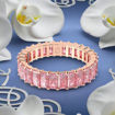 For just one small piece of jewelry, this Matrix ring packs a lot of incredible detail. The rose gold-tone plated setting is the perfect base for a circle of pink stones in a beautiful baguette princess cut. Each of the crystals is gracefully held in place with a prong setting, to deliver a gorgeous overall colorway. This elegant ring is designed for stacking your style, allowing multiple combinations for special occasions.