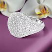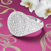 With its constellation of crystals, this scintillating motif ring will light up any outfit. The rhodium-plated band features a bold dome that is adorned with a snow pavé of clear round crystals in different sizes. The cluster effect is hypnotic and vibrant, giving you a statement ring of spellbinding style.