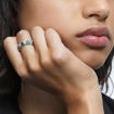 This unique cocktail ring is formed from clear and green tessellating triangle cut stones to dazzling effect. Both versatile and modern, wear it as a standalone piece to dress up casual day wear, or to lend a hint of prismatic color to any evening look. This ring is part of the Millenia family, designed by Creative Director Giovanna Engelbert for Collection I.