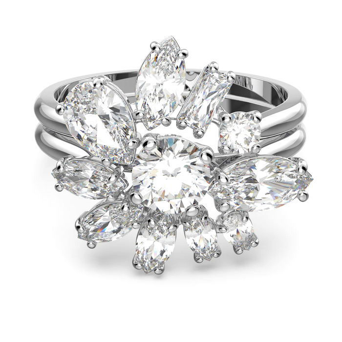Mixed cuts, Flower, White, Rhodium plated. Swarovski sine ringer er små i størrelsene og vi anbefaler å ta 1-2 størrelser større enn det du vanligvis bruker.
