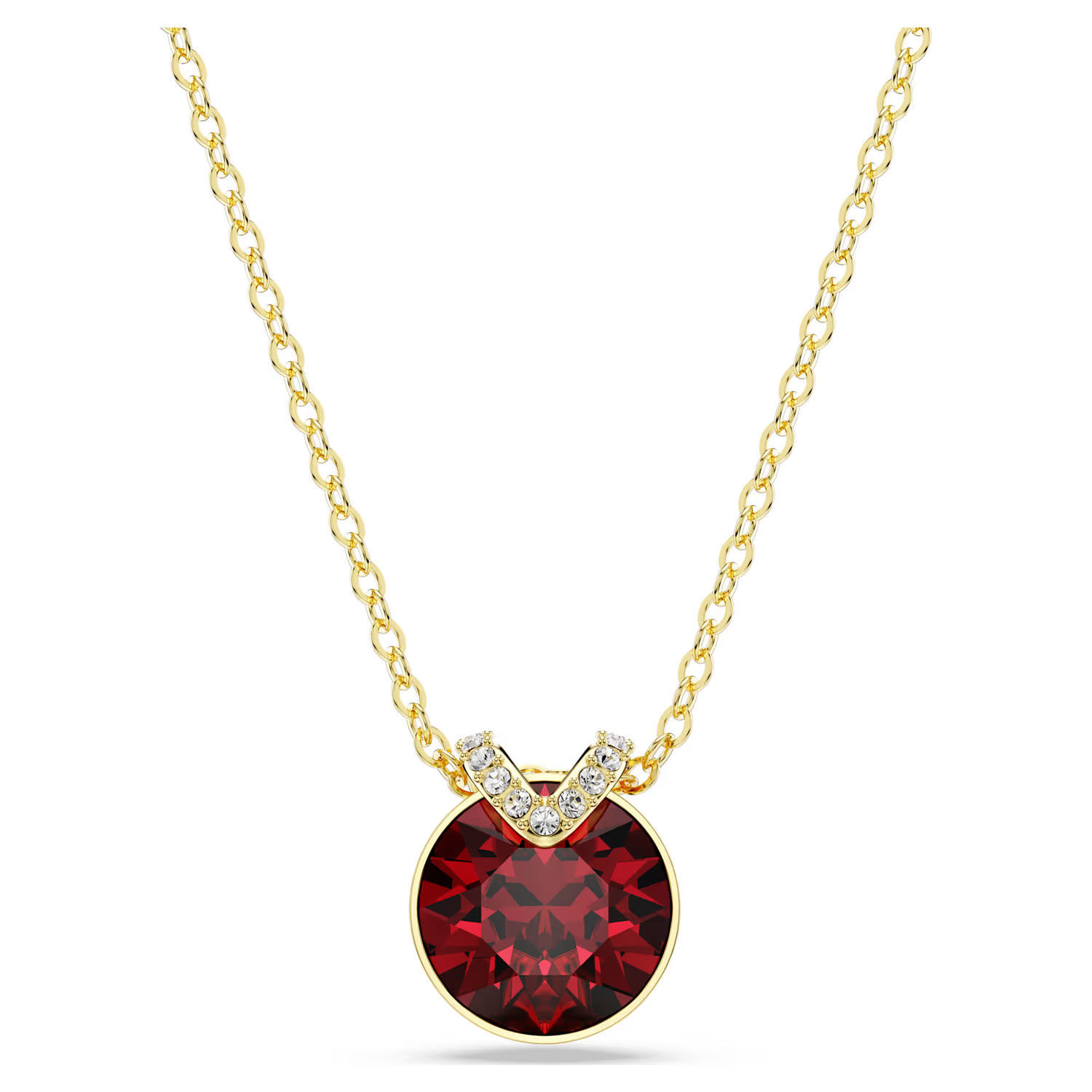 This romantic pendant has eye-catching appeal thanks to its central red crystal set in gold-tone plating. A flourish of shimmering pavé adds an extra layer of beauty, while the delicate chain exudes pure elegance. Wear it together with the matching earrings for a wondrous combination.