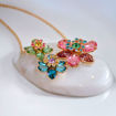 Showcasing a bright bouquet of three flowers, this stunning pendant will bring peace and nature into your style. Suspended from a gold-tone plated chain, the central motif is adorned in crystals of different shapes and colors, creating an overall effect of mood-boosting joy. A wondrous piece to wear on its own or paired with a matching Idyllia ring.