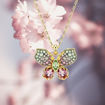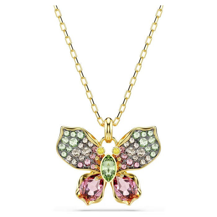Let your style take flight with this delicate butterfly pendant. The magical design is worn on a gold-tone plated chain and features a central motif that is decorated in crystals of varying shapes and colors. The eye-catching creation is emblematic of the wonder to be found in the beautiful Idyllia garden and delivers a meaningful piece of jewelry that is joyful as well as luxurious.
