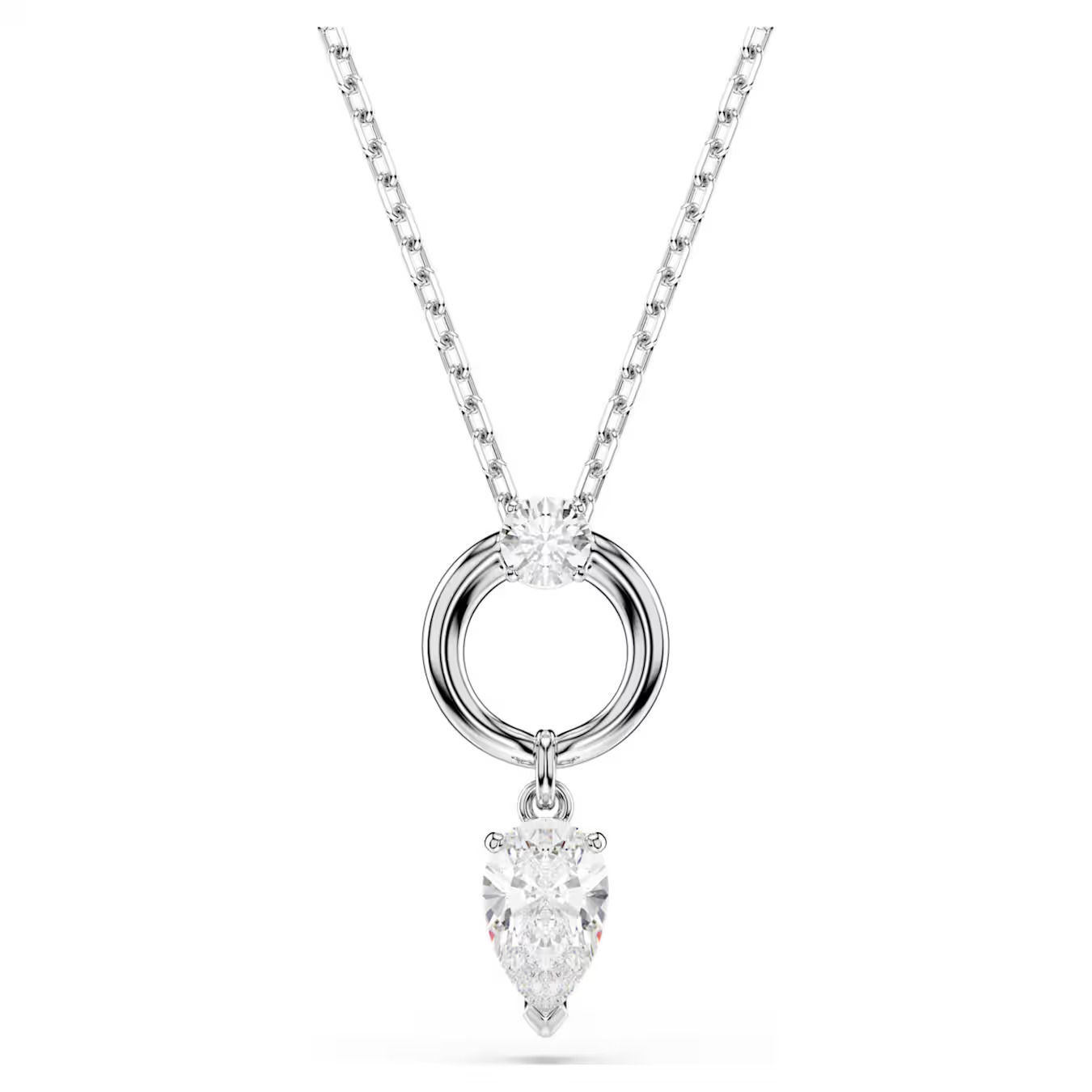 Mesmera pendant Pear cut, White, Rhodium plated. *Length (minimum - maximum): 38 - 45 cm *Motif size: 2.2 x 1 cm
