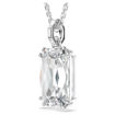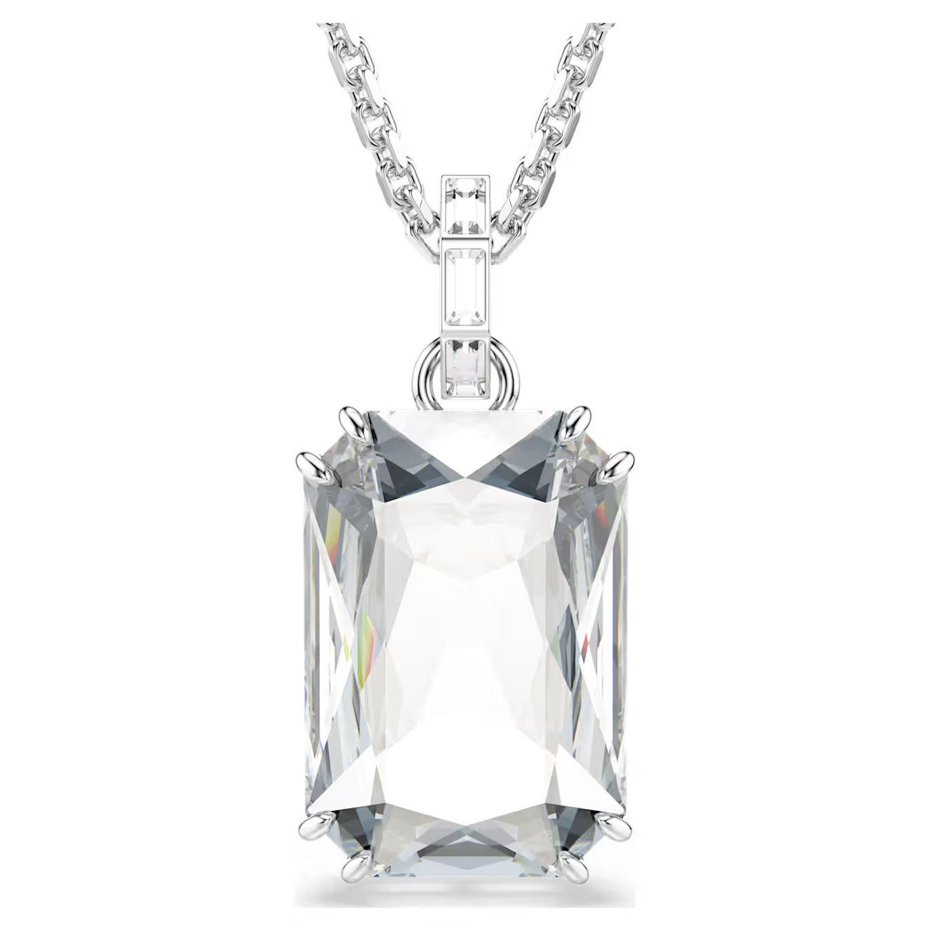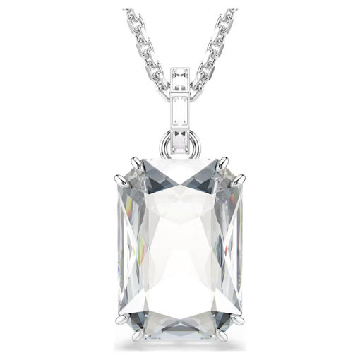 With emblematic Millenia style, this luminous pendant is a pure creation of light. The central motif is crafted from a large clear crystal in a double prong setting and connects to the rhodium plated chain via an elegant bail adorned in channel-set crystals. A mesmerizing choice to elevate your everyday glow.