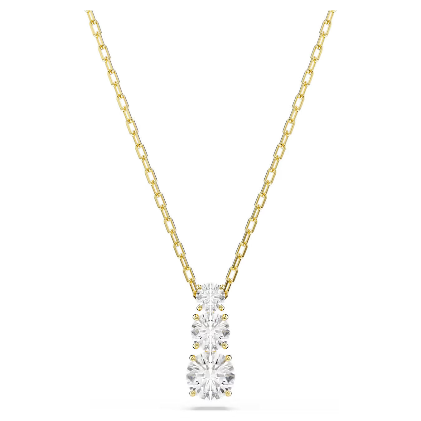 Inspired by the concept of eternal love, this romantic pendant is timelessly elegant. The trio of clear Swarovski Zirconia are majestically suspended from a gold-tone plated chain, creating a piece of jewelry that is full of emotion. It’s the perfect gift for a loved one, and can be worn with a matching pair of pierced earrings or a ring.