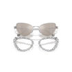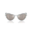 These versatile sunglasses can be worn in multiple ways, giving you the choice of extravagant or subtle style. Inspired by our Mesmera jewelry range, the design features gunmetal frames with mirror platinum lenses and crystals on the temples and tips. The look can also be enhanced with a crystallized clip-on frame, which surrounds the lenses in a bold mix of stone cuts. A pair of sunglasses that can change your look in an instant.