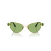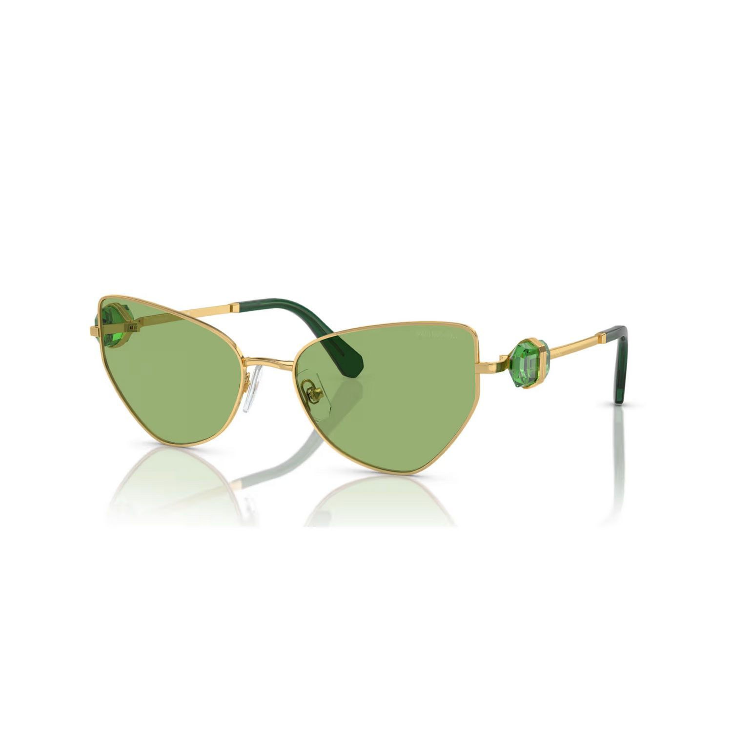 These distinctive cat-eye sunglasses have been designed for extravagant style. The gold-tone metallic frames are contrasted with deep green lenses and hinged octagon-cut green crystals on each temple. This design is inspired by our bold Lucent family and will ignite your look every time you step outside.