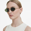 These oval-shape sunglasses put classic elegance in the spotlight. The slim design is inspired by rings from the Dextera jewelry family, and features gold-tone finished frames, dark green lenses, and a unique hinge that is adorned in a refined pavé. It’s a slender silhouette and a radiant example of savoir-faire that will add pure sophistication to any look.