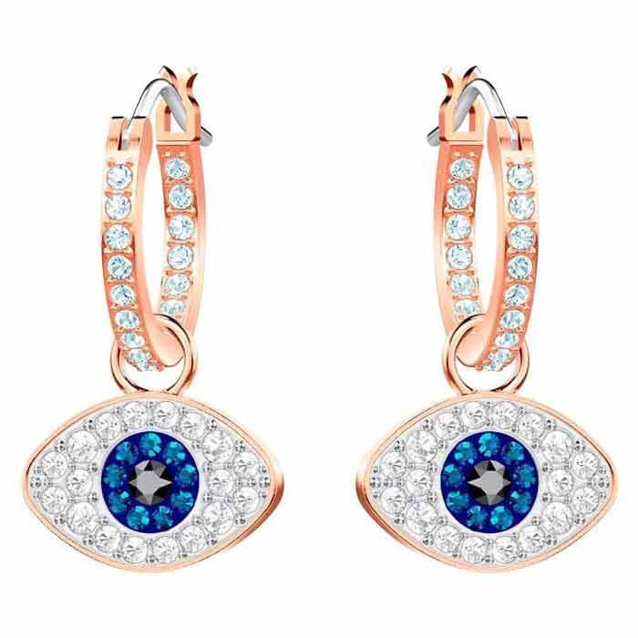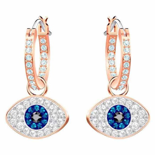 Swarovski Symbolic Evil Eye Hoop Pierced Earrings, Blue, Rose-gold tone plated øredobber - 5425857