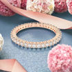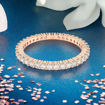 This Vittore ring is ideal for a subtle touch of glitter. It combines the warm pairing of clear round stones with rose gold-tone plating, giving you a look that is fiery and luxurious. Designed to shine on all sides, you can stack this jewelry with other styles, such as an eye-catching cocktail ring for an effective contrast.