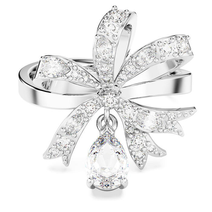 Swarovski Volta cocktail ring Bow, Small, White, Rhodium plated - 5647728