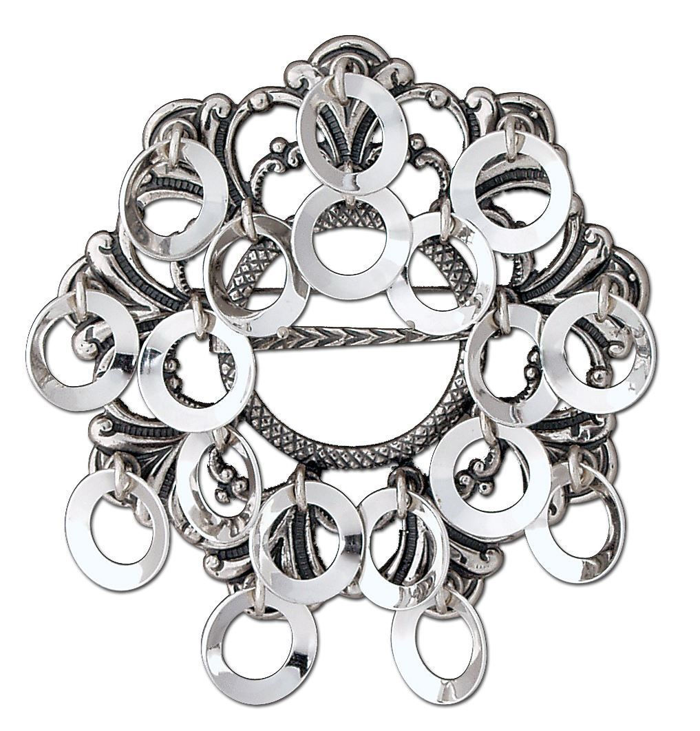 Dette er en støpt sølje i oksidert sølv, spesielt designet for bunader i Trøndelag. Søljen er rik på detaljer, dekorert med raslende ringløv som tilfører et tradisjonelt og elegant preg. Det vakre samspillet mellom de blanke og mørke, oksiderte partiene skaper flotte kontraster og gir søljen et unikt og sofistikert uttrykk. Denne søljen fra Sylvsmidja er et flott valg for å komplettere og løfte din Trønderbunad med et tradisjonelt og stilig tilbehør.